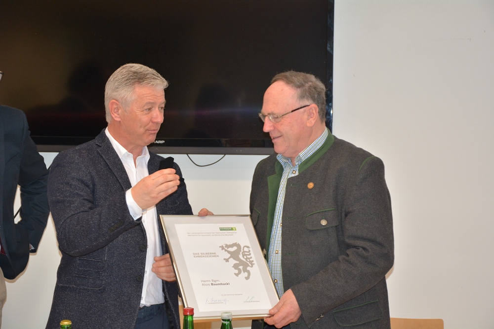 Für Bgm. Alois Baumhackl gab es als Dank für sein jahrzehntelanges Engagement das Ehrenzeichen der Steirischen Volkspartei in Silber.